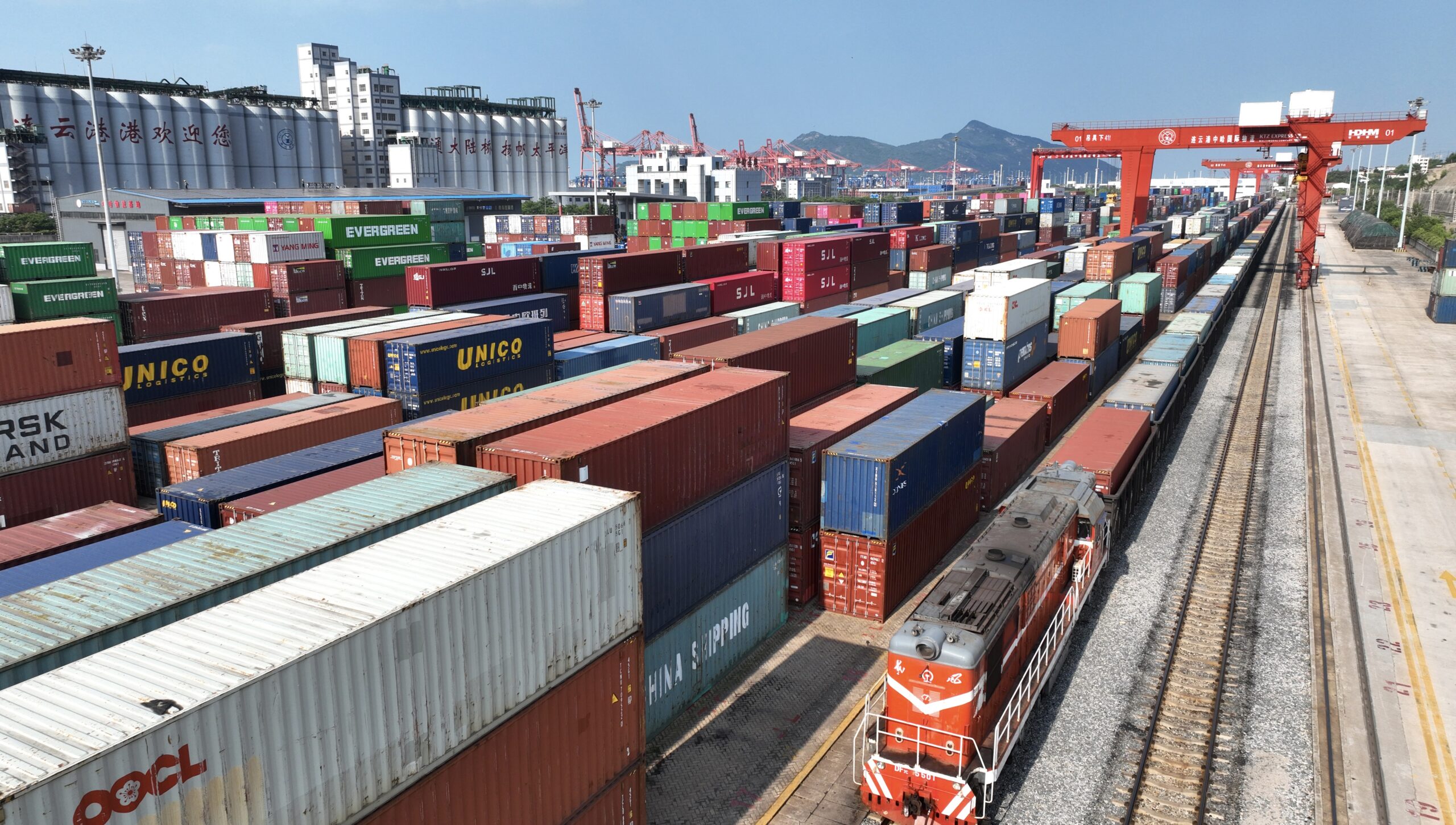 Image: A fully loaded container train is preparing to depart from the China-Kazakhstan Logistics Cooperation base in Lianyungang, Jiangsu Province, China, on May 10, 2024. (Photo by Costfoto/NurPhoto)
