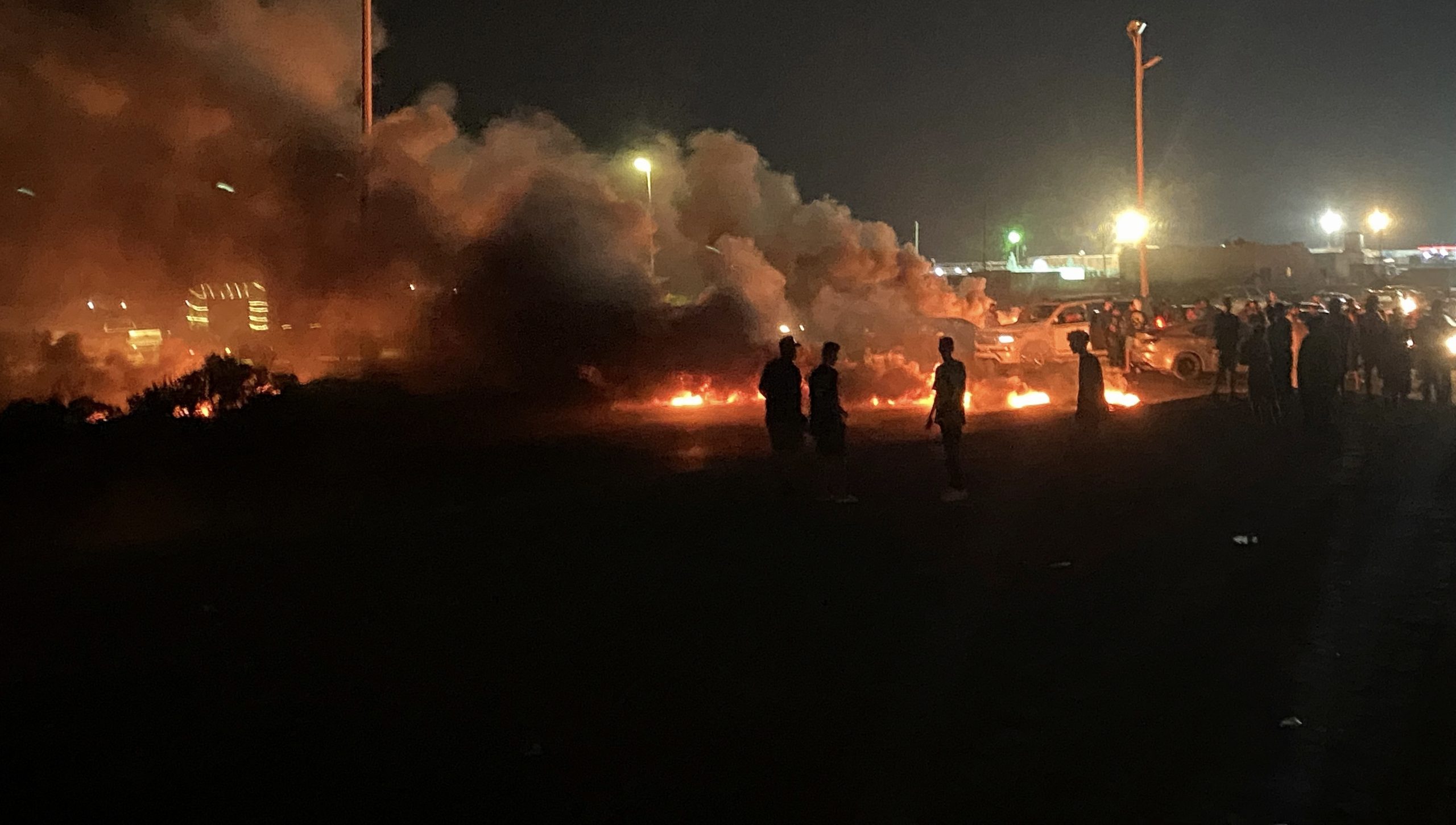 Image: Demonstrators burn tires in protest against the meeting which was held last week in Italy between foreign affairs ministers of Libya and Israel, in Tripoli, Libya, August 27, 2023. REUTERS/Hani Amara
