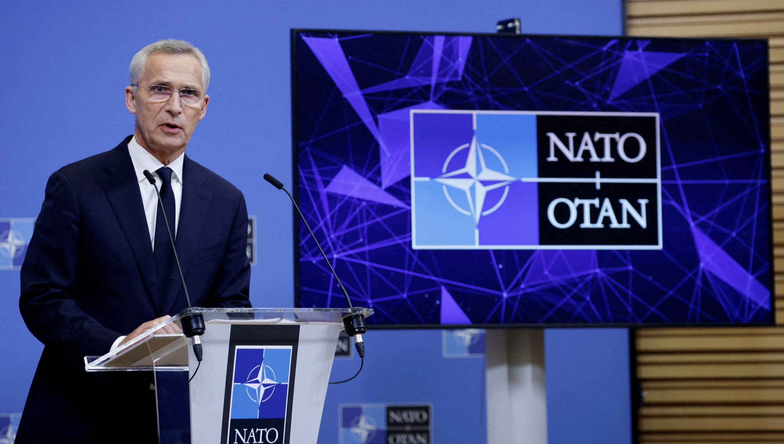 Image: NATO Secretary General Jens Stoltenberg speaks during a press conference during a NATO Defence Ministers' meeting at the Alliance's headquarters in Brussels, Belgium October 11, 2023. REUTERS/Johanna Geron