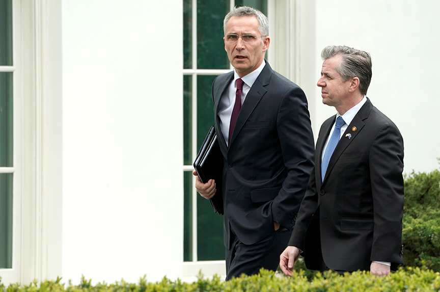 Image: NATO Secretary General Jens Stoltenberg (left) arrived for a meeting with US President Donald J. Trump at the White House in Washington on April 2. (Reuters/Jonathan Ernst)