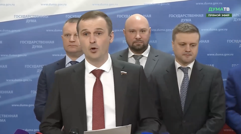 Image: Russian State Duma member Sergey Leonov speaks at a press conference in Moscow, March 22, 2022. (Source: DumaTV)