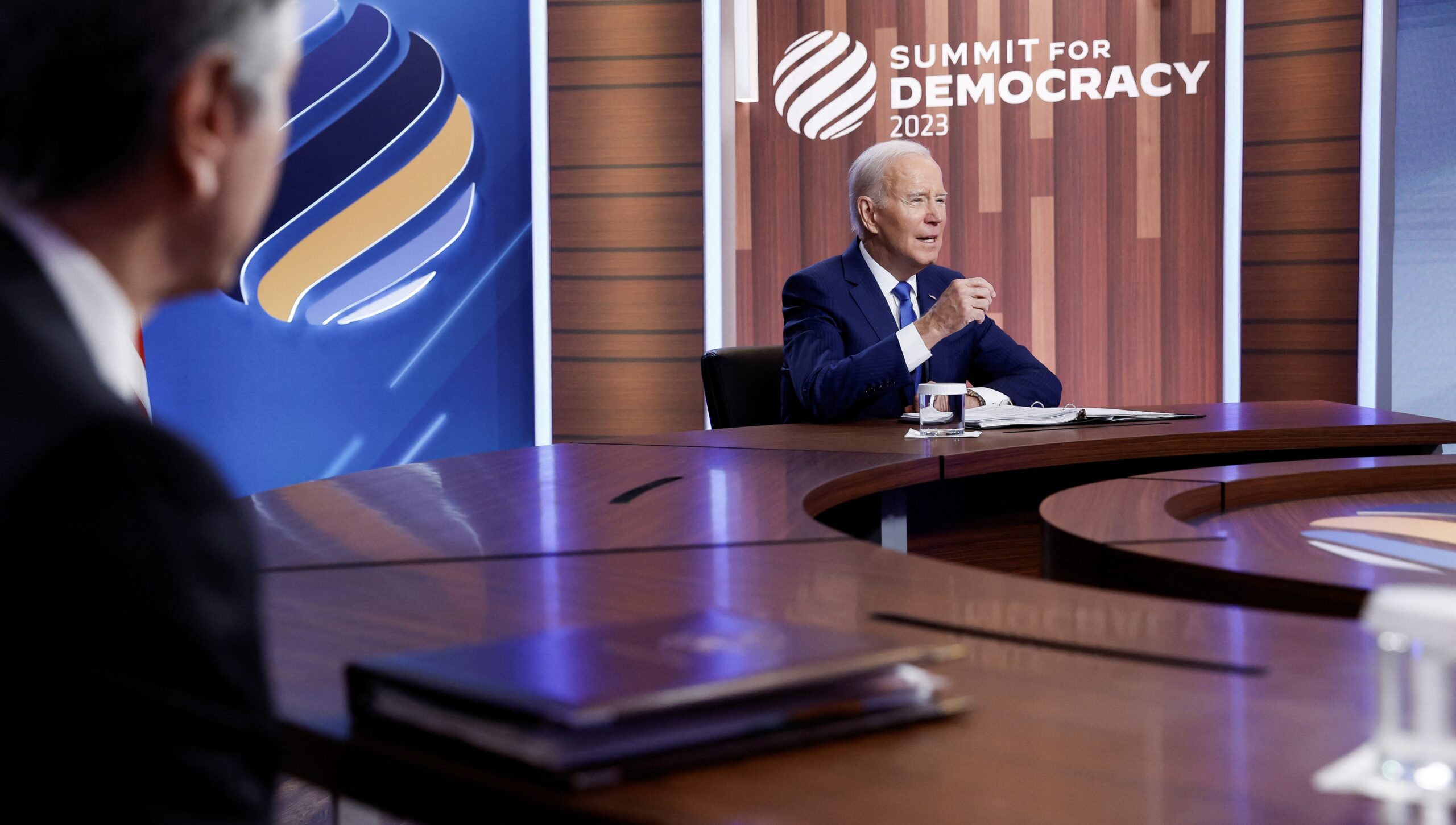 Image: US President Joe Biden delivers remarks during a virtual Summit for Democracy, which he is hosting from an auditorium on the White House campus in Washington,, March 29, 2023. REUTERS/Jonathan Ernst