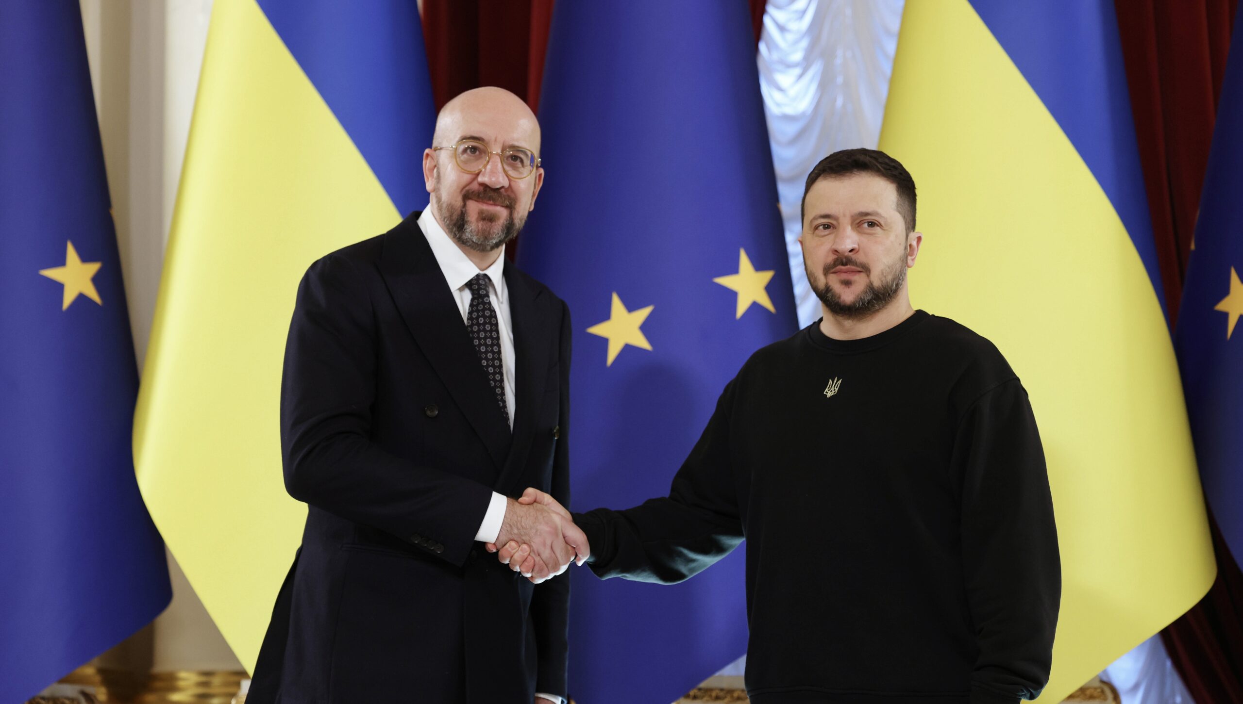 Image: Ukraine, Kyiv, 2023-11-21. President of the European Council Charles Michel, President of Ukraine Volodymyr Zelensky, President of Moldova Maia Sandu visit to the meeting commemorating the 10th anniversary of the Maidan Uprising on 21 November 2023 in Kyiv.