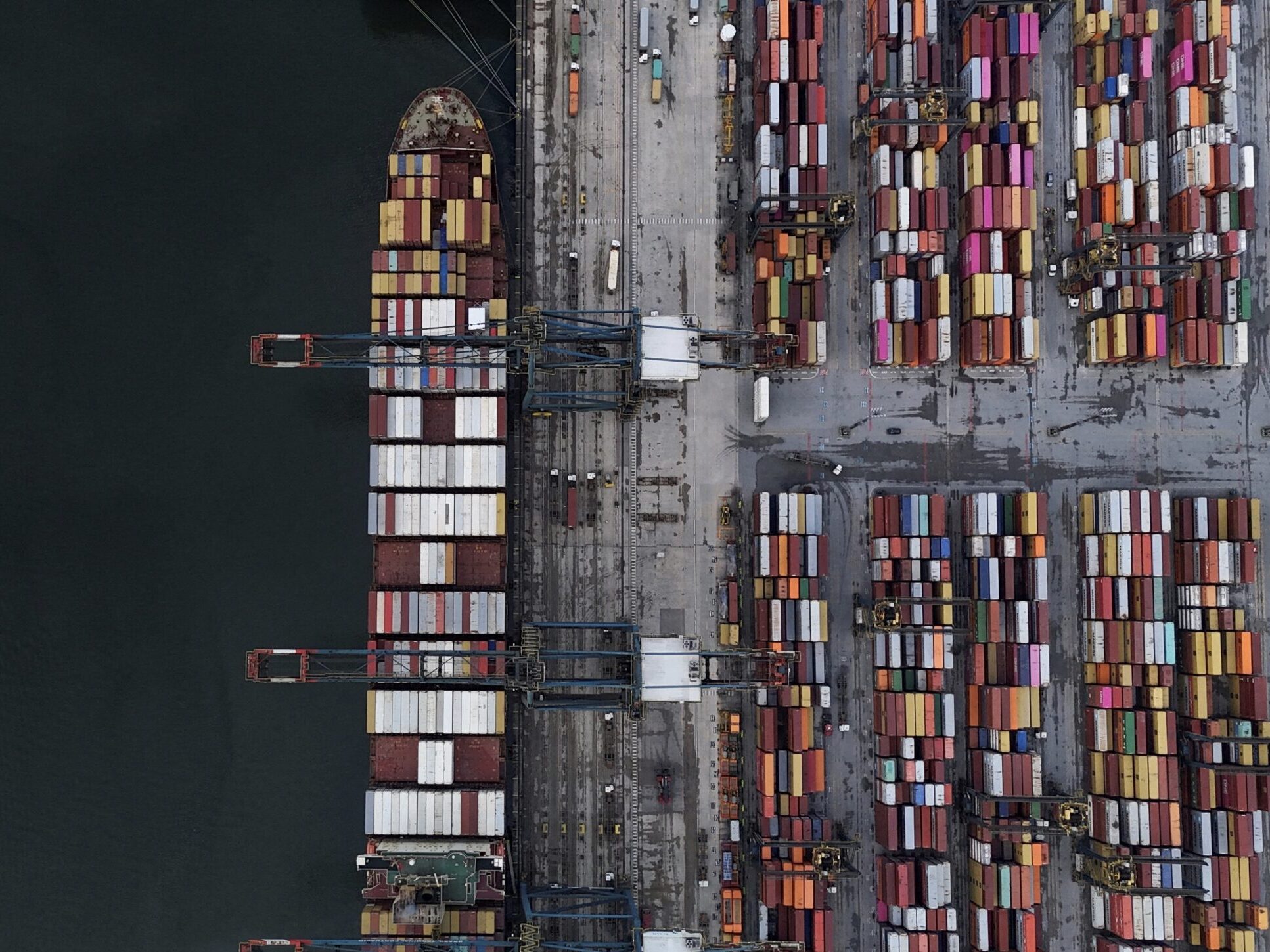 Image: A drone view shows a ship and containers at the Port of Santos, in Santos, Brazil April 3, 2025. REUTERS/Amanda Perobelli/File Photo