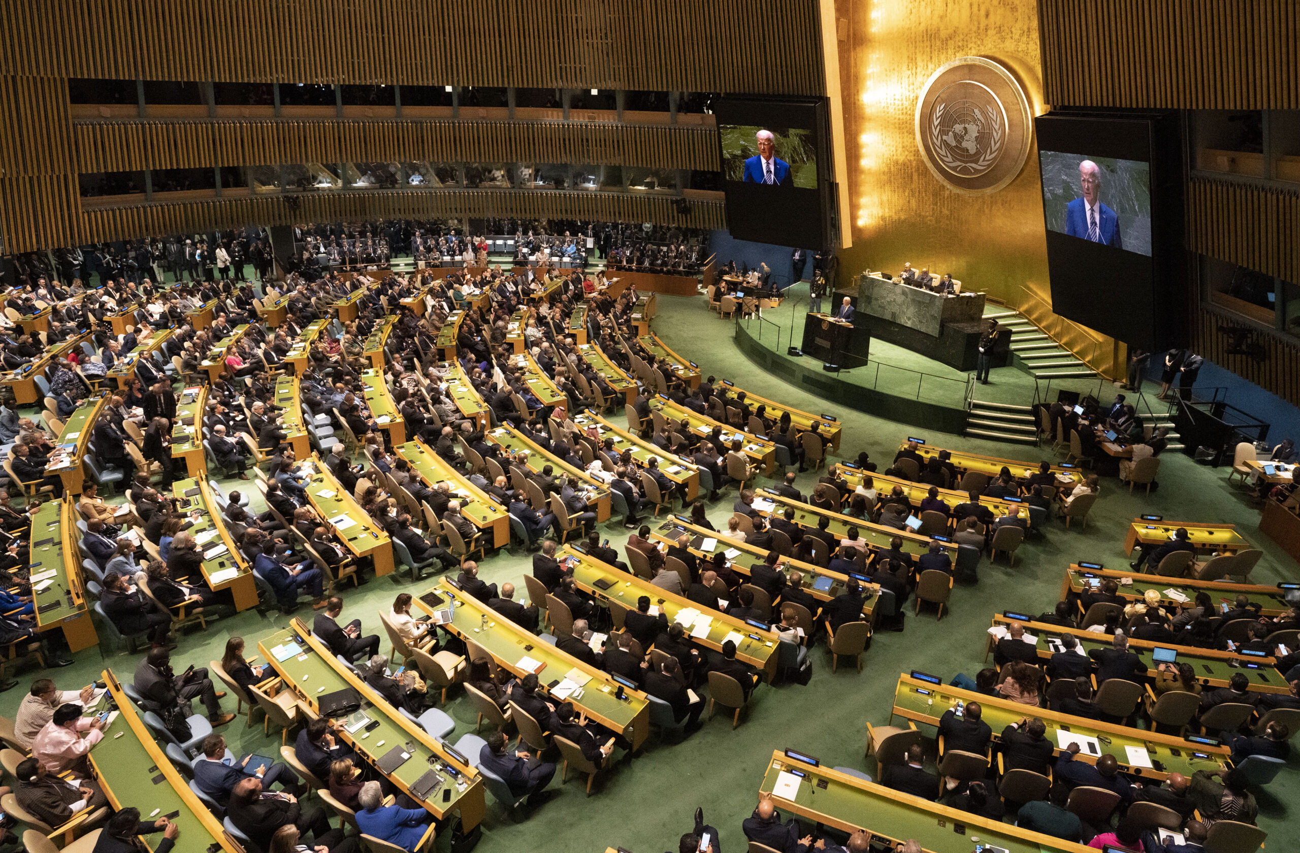 Image: NEW YORK, NY - SEPTEMBER 19: U.S. President Joe Biden addresses the General Debate of the 78th session of the United Nations General Assembly at the United Nations headquarters on September 19, 2023 in New York City. (Photo by Liu Guanguan/China News Service/VCG )