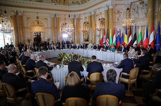 Image: U.S. President Donald Trump, Polish President Andrzej Duda and Croatian President Kolinda Grabar-Kitarovic attend the Three Seas Initiative Summit along with other participants, at the Royal Castle in Warsaw, Poland July 6, 2017. (REUTERS/Carlos Barria)