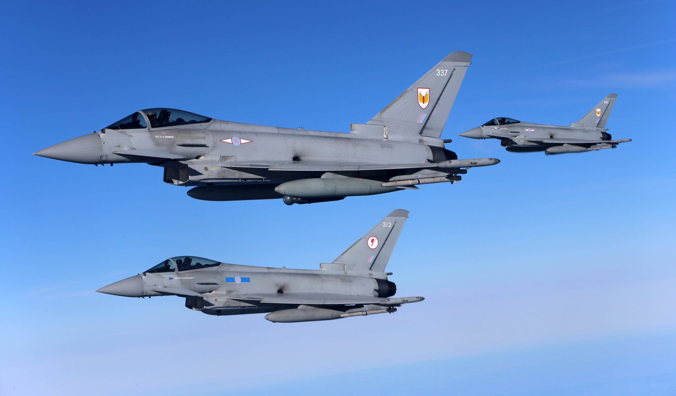 Image: Three British Air Force Royal Air Force RAF Eurofighter Typhoon FGR 4 fighter jets over the North Sea during the NATO air force exercise Ramstein Flag 2025. IMAGO/Björn Trotzki via Reuters Connect