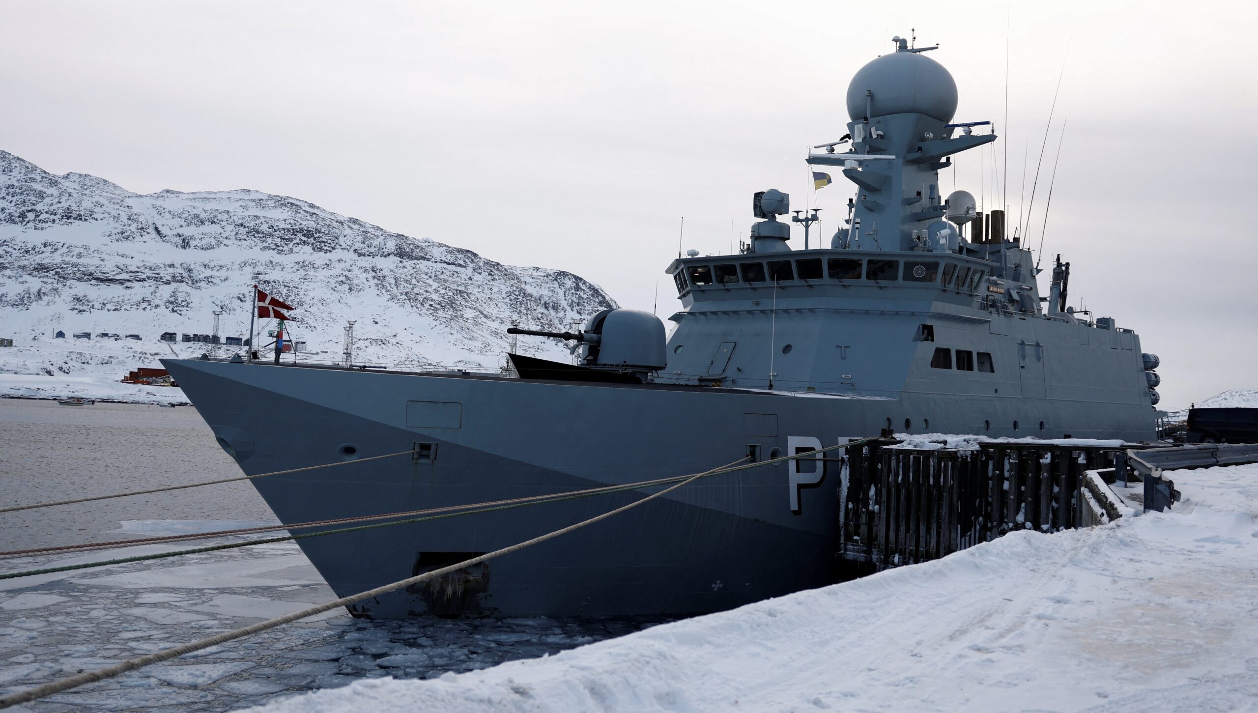 Image: A view shows the Danish military vessel P572 Lauge Koch moored in the Nuuk port, Greenland, February 8, 2025. REUTERS/Sarah Meyssonnier