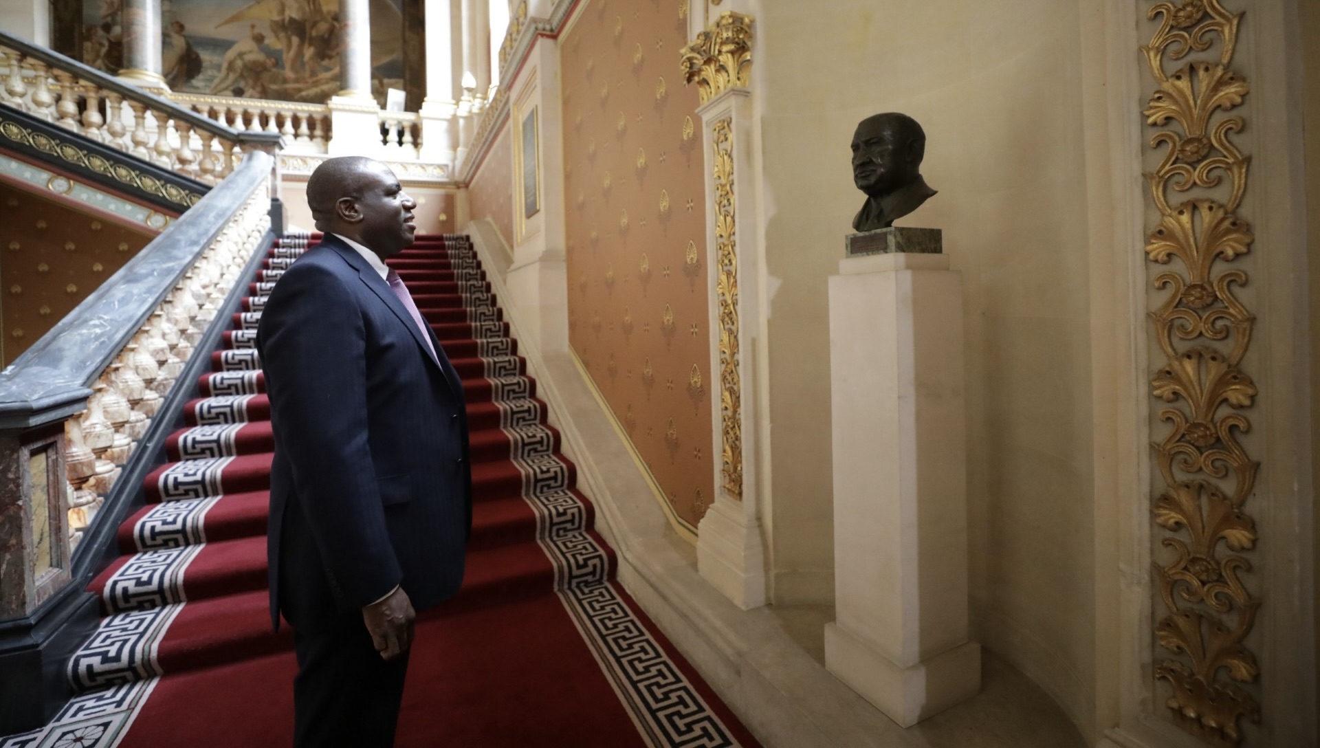 Image: UK Foreign Secretary David Lammy looks at a sculpture of Ernest Bevin (Ben Dance / UK Foreign, Commonwealth & Development Office)