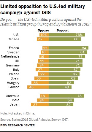 Support for US involvement was reflected in Wike’s results. Particularly, US military action against the Islamic State of Syria and al-Sham (ISIS) has been very popular, despite significant criticism of the Obama administration’s Syria policy.