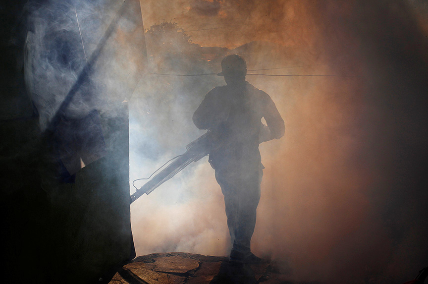 Image: A health ministry worker fumigated a house to kill mosquitoes during a campaign against dengue and chikungunya, and to prevent Zika in Managua, Nicaragua, on October 27, 2016. (Reuters /Oswaldo Rivas)