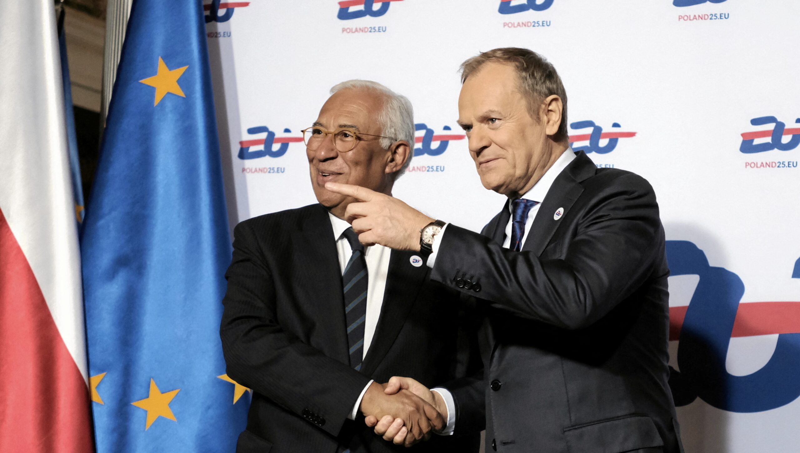 Image: European Council President Antonio Costa and Polish Prime Minister Donald Tusk meet as they attend a gala on the day of an official opening of the Polish presidency of the Council of the European Union, in Warsaw, Poland January 3, 2025. Agencja Wyborcza.pl/Slawomir Kaminski/via REUTERS