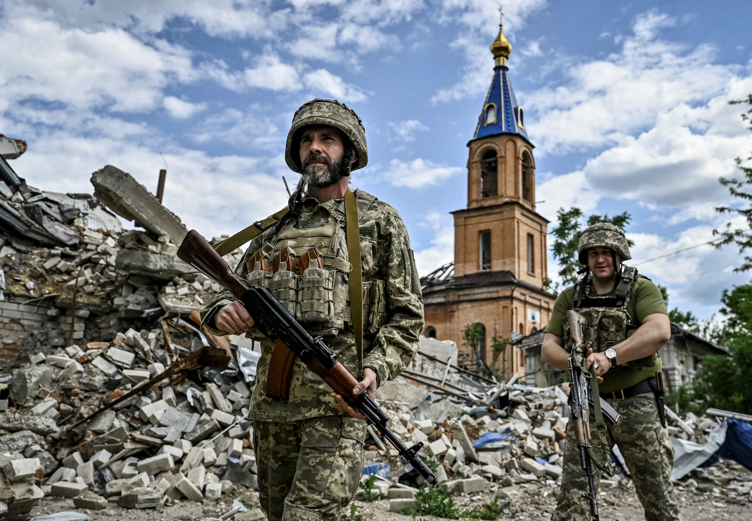 Image: Ukrainian servicemen patrol an area heavily damaged by Russian military strikes, amid Russia's attack on Ukraine, in the town of Orikhiv in Zaporizhzhia region, Ukraine May 20, 2024. REUTERS/Stringer