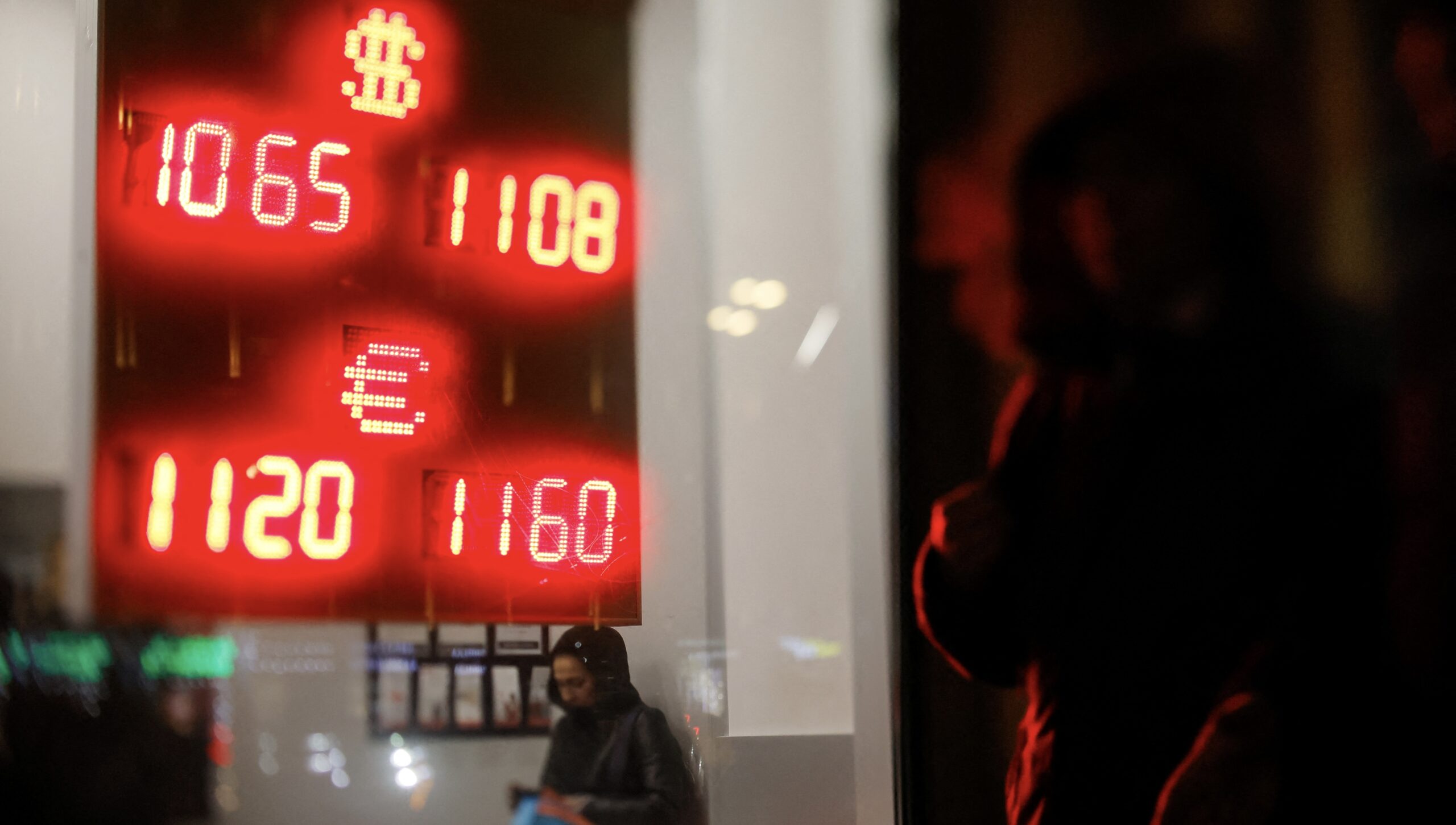 Image: People walk past a board displaying currency exchange rates of the U.S. dollar and Euro against Russian rouble in Moscow, Russia November 27, 2024. Picture taken using a tilt-shift lens. REUTERS/Maxim Shemetov