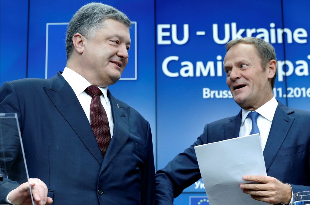 Image: Ukrainian President Petro Poroshenko and European Council President Donald Tusk (R) attend a joint news conference following a EU-Ukraine summit in Brussels, Belgium, November 24, 2016. REUTERS/Francois Lenoir