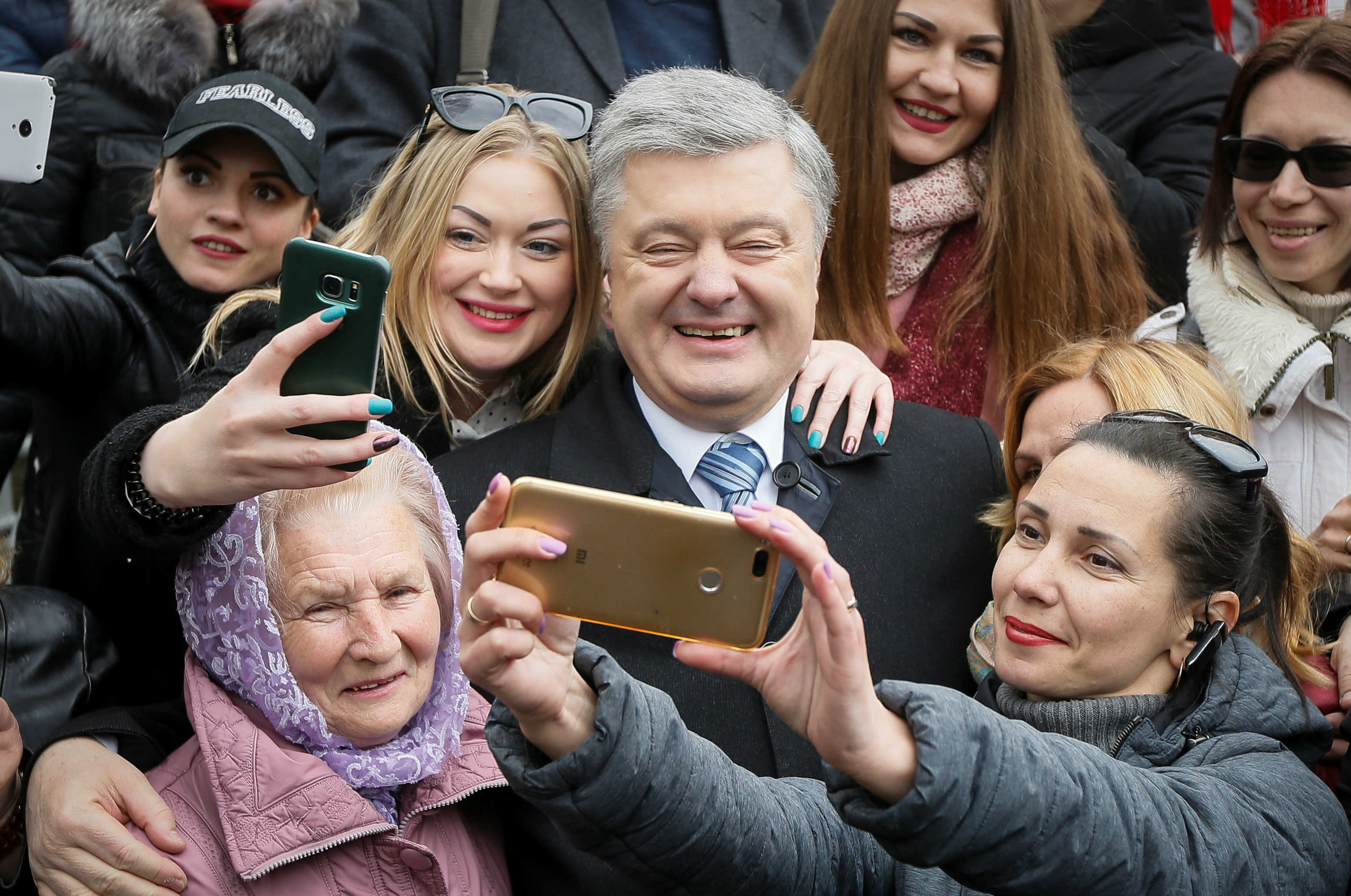 Image: Ukraine's President and presidential candidate Petro Poroshenko poses with people after attending a prayer for fair election in Kyiv, Ukraine March 30, 2019. REUTERS/Valentyn Ogirenko