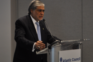 On October 9, the South Asia Center hosted Ishaq Dar, finance minister of Pakistan, for an event entitled “Pakistan’s Continuing Economic Challenges.” Related Content Invitation Mr. Dar discussed a number of issues, including the ongoing energy crisis, potential improvement in trade relations with India, and the recent loan from the International Monetary Fund. While Mr. … Continue reading Finance Minister Dar on Pakistan’s Continuing Economic Challenges