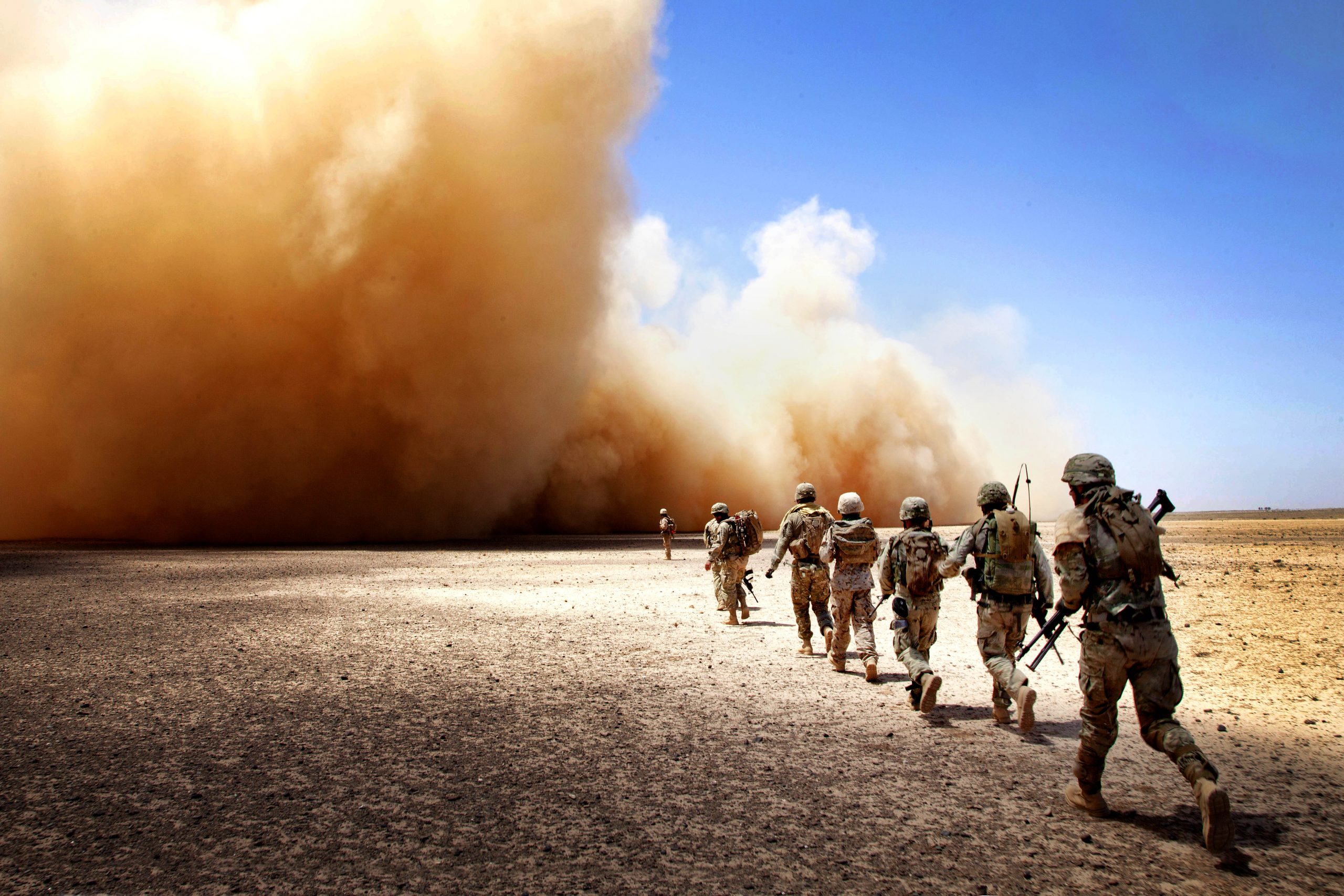 Image: U.S. Marines assigned to Georgian Liaison Team-9 and Georgian Army soldiers assigned to the 33rd Light Infantry Battalion make their way to the extraction point during Operation Northern Lion II in Helmand province, Afghanistan, July 3, 2013. Northern Lion II was a Georgian-led operation conducted to deter insurgents, establish a presence, and gather human intelligence in the area. (U.S. Marine Corps photo by Cpl. Alejandro Pena/Released)