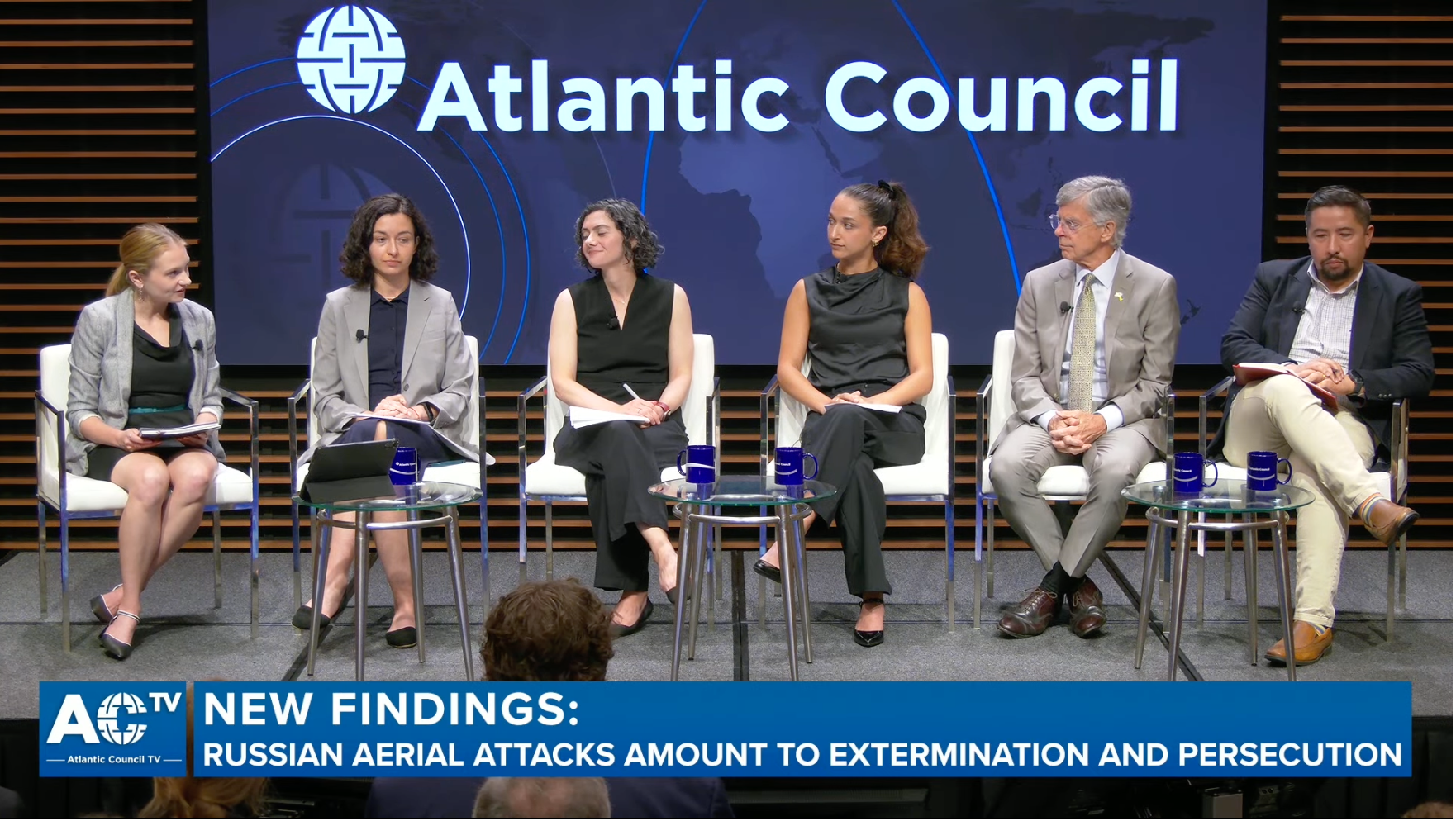 On June 25, 2025, the Atlantic Council’s Eurasia Center and Strategic Litigation Project, together with the International Partnership for Human Rights (IPHR) and the International Human Rights Clinic at Harvard Law School (IHRC), hosted a hybrid panel discussion on new findings and policy implications surrounding Russian aerial attacks against Ukraine over the last three years. The event was moderated by Strategic Litigation Project Staff Lawyer Celeste Kmiotek.