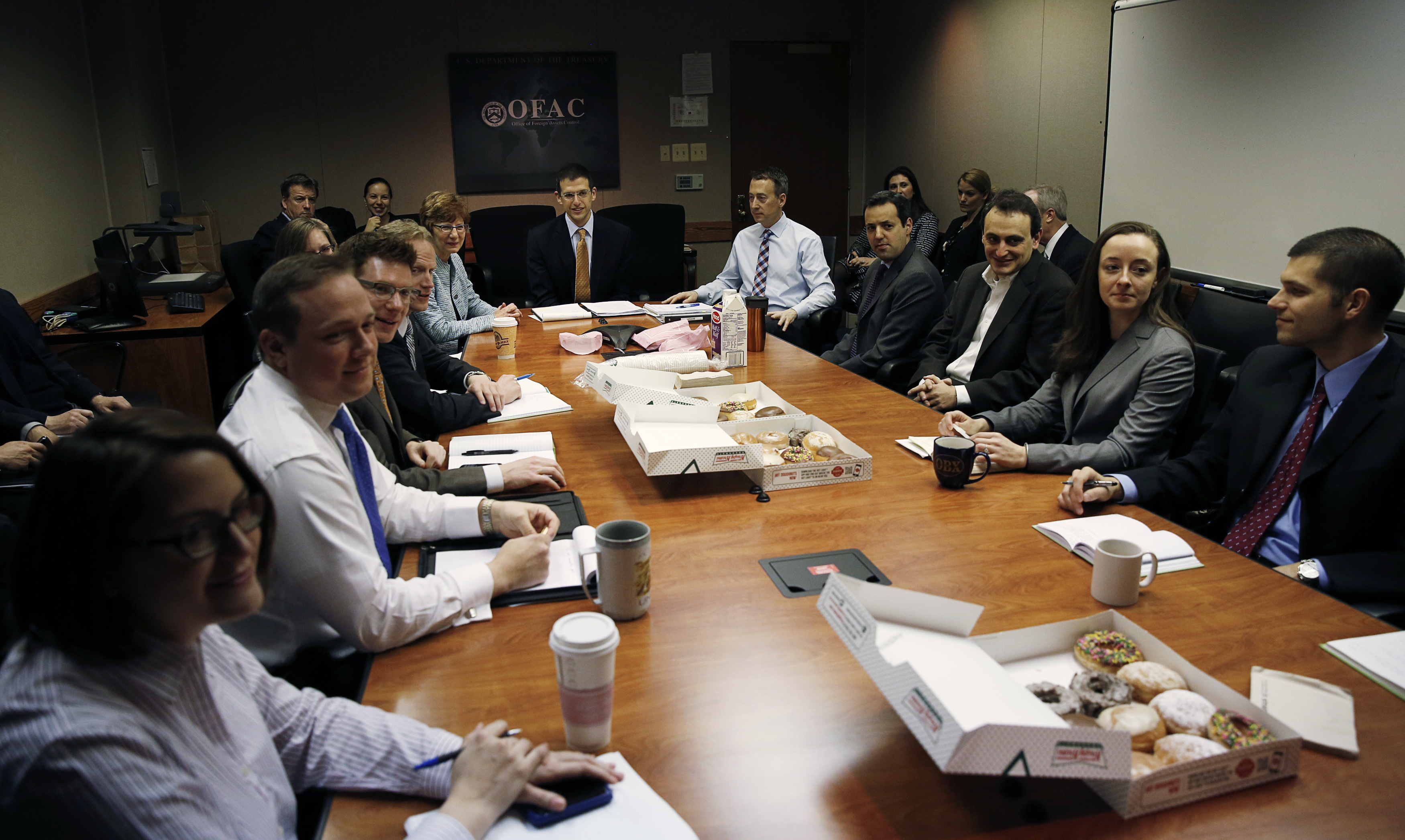 Image: Former Office of Foreign Assets Control (OFAC) Director Adam Szubin and his staff meet at the U.S. Treasury Department in Washington March 26, 2014. REUTERS/Gary Cameron