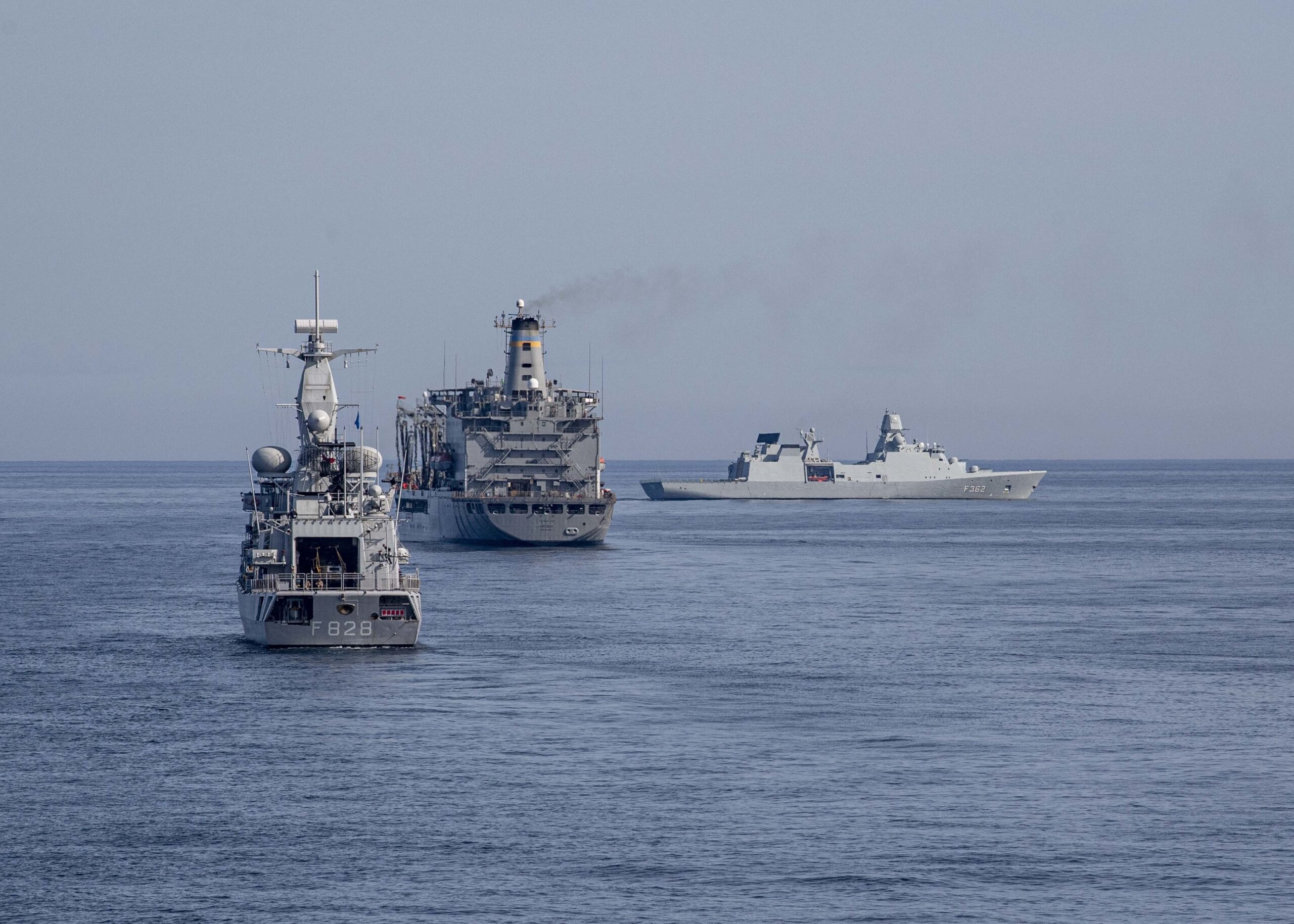 Image: 190910-N-UB406-0146 ATLANTIC OCEAN (Sept. 10, 2019) The Royal Danish navy frigate HDMS Peter Willemoes (F 362), right, the underway replenishment oiler USNS Patuxent (T-AO 201), center, and the Royal Netherlands navy frigate HNLMS Van Speijk (F 828), left, transit the Atlantic Ocean during exercise Cutlass Fury 2019. Cutlass Fury is designed to be a biennial, medium-scale exercise off the coast of Nova Scotia and Newfoundland, with the sole purpose to exercise Canada's Atlantic Fleet, Allied Navies, and other joint elements in tactical-level warfare. (U.S. Navy photo by Mass Communication Specialist 2nd Class Cameron Stoner)