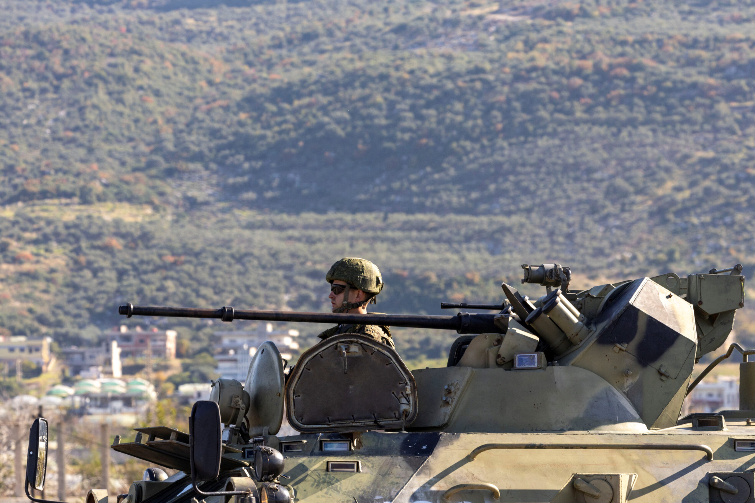 Image: A Russian soldier rides on an infantry fighting vehicle part of a Russian military convoy heads towards Hmeimim air base in Syria's coastal Latakia, Syria, December 14, 2024. REUTERS/Umit Bektas