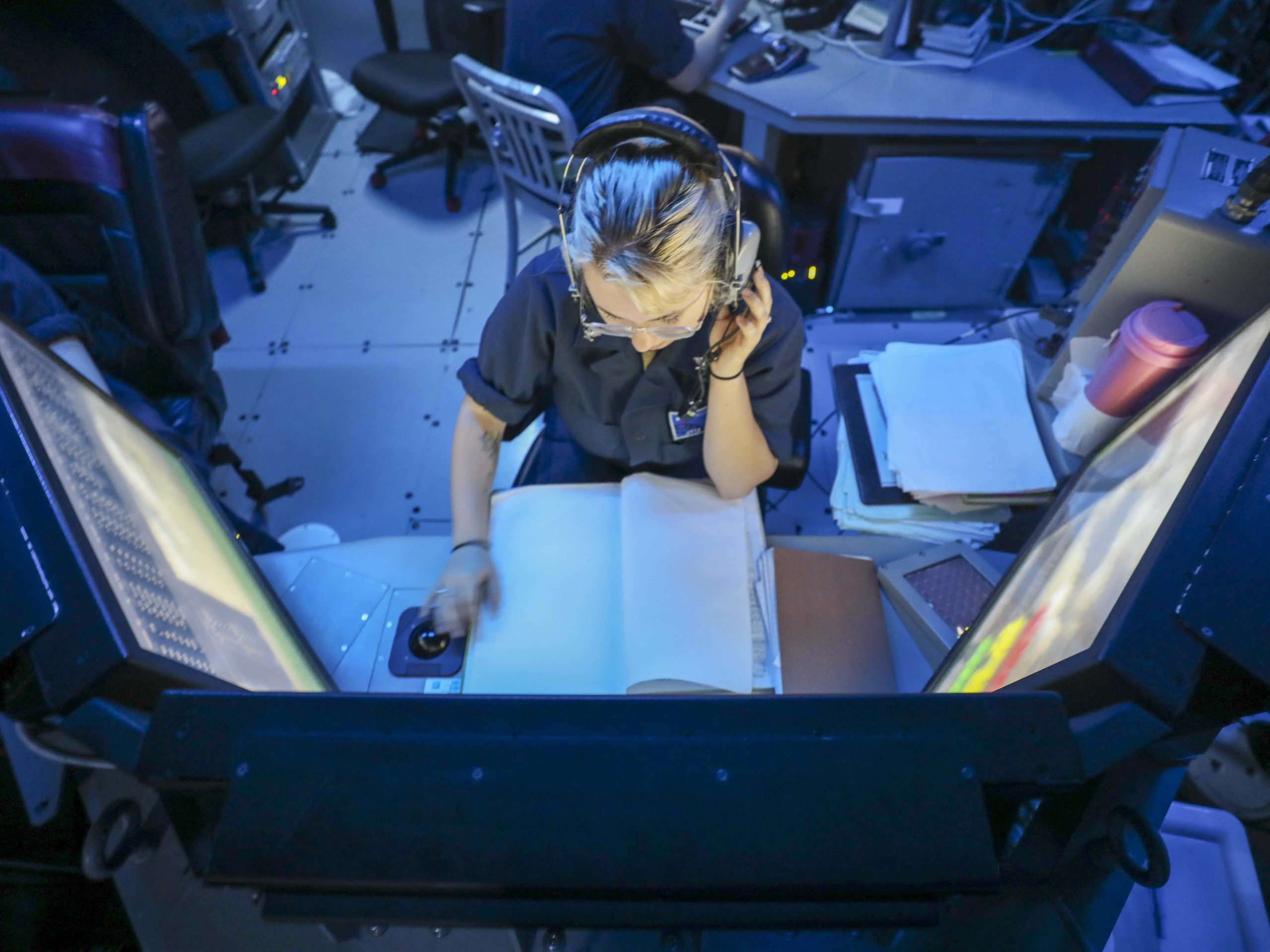 Image: PHILIPPINE SEA (March 18, 2022) Cryptologic Technician 3rd Class Lily Santos, from Dover, New Hampshire, analyzes signals in the combat information center of Arleigh Burke-class guided missile destroyer USS Higgins (DDG 76). Higgins is assigned to Commander, Task Force (CTF) 71/Destroyer Squadron (DESRON) 15, the Navy’s largest forward-deployed DESRON and the U.S. 7th Fleet’s principal surface force. (U.S. Navy photo by Mass Communication Specialist 2nd Class Arthur Rosen)