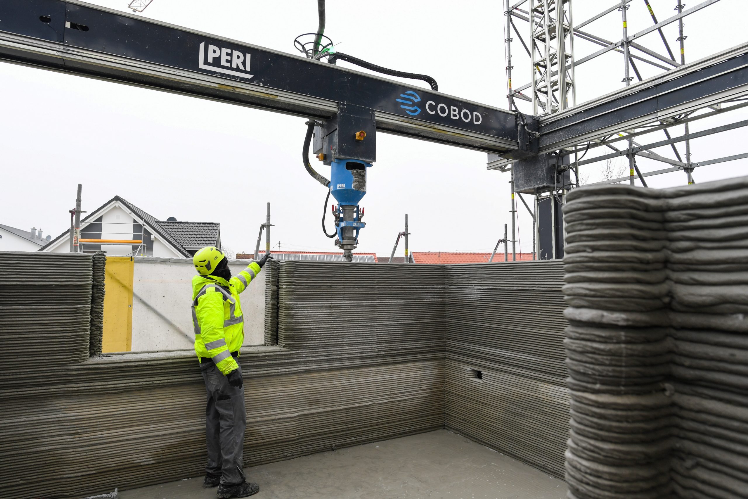 Image: The wall of an apartment house is being printed by a 3D printer in Wallenhausen, Germany, November 25, 2020. Picture taken November 25, 2020. REUTERS/Andreas Gebert