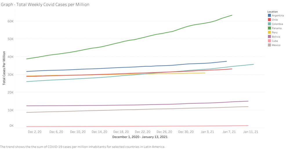 - Deaths per capita (deaths per million people): Peru (1,156) #13 worldwide, Panama (1,048) #19 worldwide, Mexico (1,046) #20 worldwide, Argentina (987) #22 worldwide, Brazil (960) #25 worldwide, Colombia (914) #26 worldwide, Chile (896) #27 worldwide, Bolivia (804) #3 worldwide, Ecuador (800) #34 worldwide, Belize (690) #39 worldwide, Source: worldometers.info