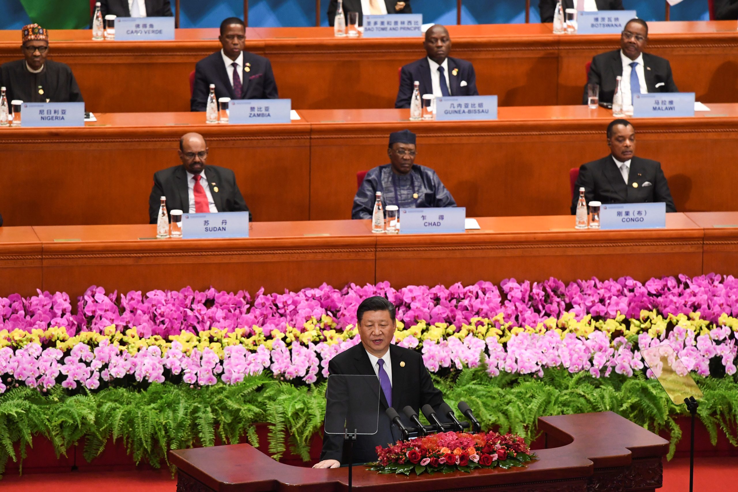 Image: China's President Xi Jinping, front center, gives a speech during the opening ceremony of the Forum on China-Africa Cooperation at the Great Hall of the People in Beijing September 3, 2018. Madoka Ikegami/POOL Via REUTERS