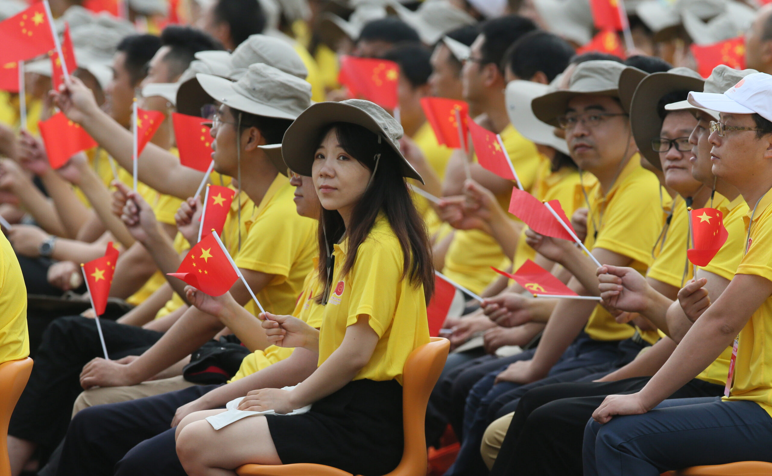 Image: People gather to attend a ceremony to commemorate the 100th anniversary of the founding of the Chinese Communist Party at Tiananmen Square in Beijing on July 1, 2021. ( The Yomiuri Shimbun )