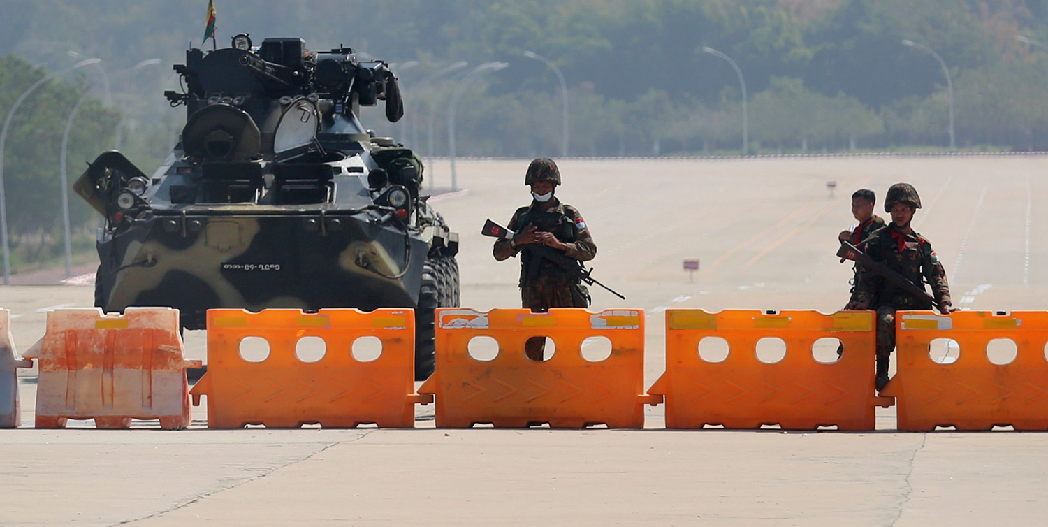 Image: Myanmar's military checkpoint is seen on the way to the congress compound in Naypyitaw, Myanmar, February 1, 2021. REUTERS/Stringer