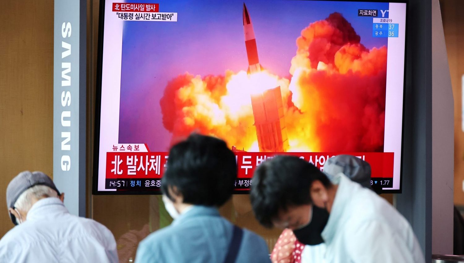 Image: People watch a TV broadcasting file footage of a news report on North Korea firing what appeared to be a pair of ballistic missiles off its east coast, in Seoul, South Korea, September 15, 2021. REUTERS/Kim Hong-Ji