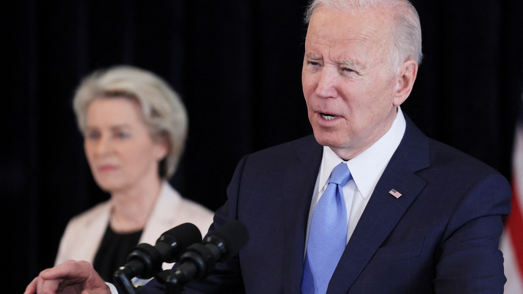 Image: U.S. President Joe Biden gives a joint press statement with European Commission President Ursula von der Leyen at the U.S. Mission in Brussels, Belgium March 25, 2022. Photo via REUTERS/Evelyn Hockstein