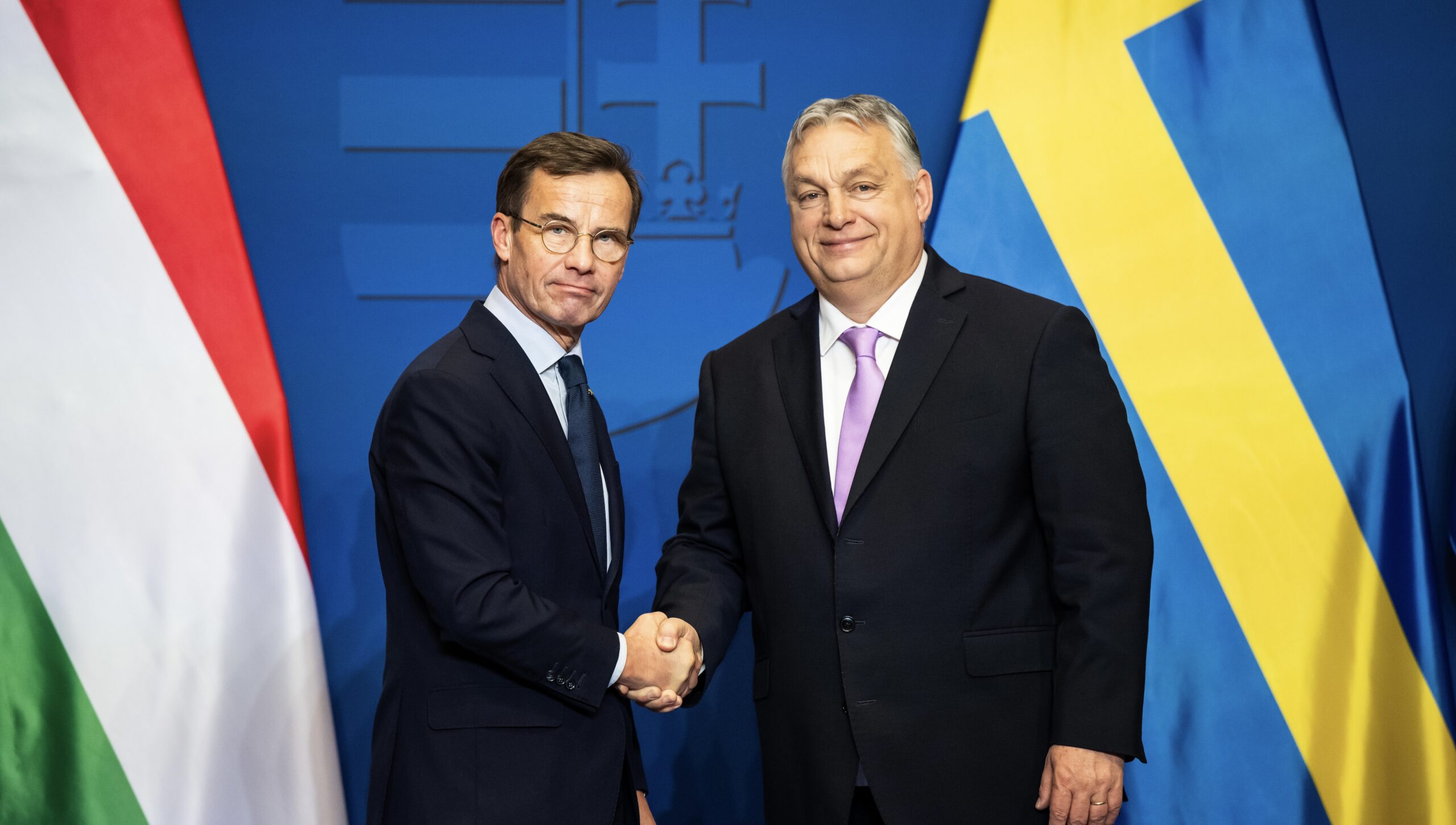 Image: Swedish Prime Minister Ulf Kristersson (l) and Hungarian Prime Minister Viktor Orban shake hands after a joint press conference in Budapest. Shortly before Hungary's expected approval of Sweden's accession to NATO, the two countries have agreed a comprehensive arms deal.