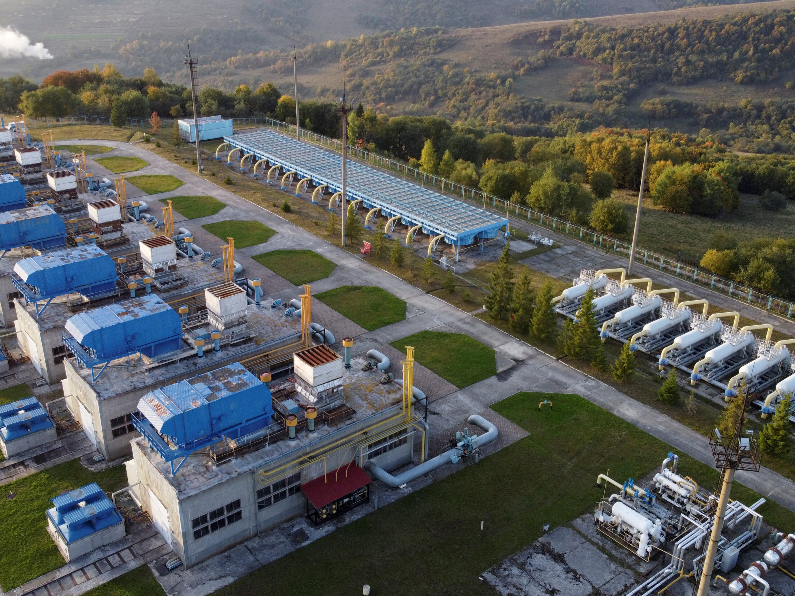 Image: An aerial view shows a gas compressor station near Volovets, Ukraine, October 7, 2021. Picture taken with a drone. REUTERS/Gleb Garanich