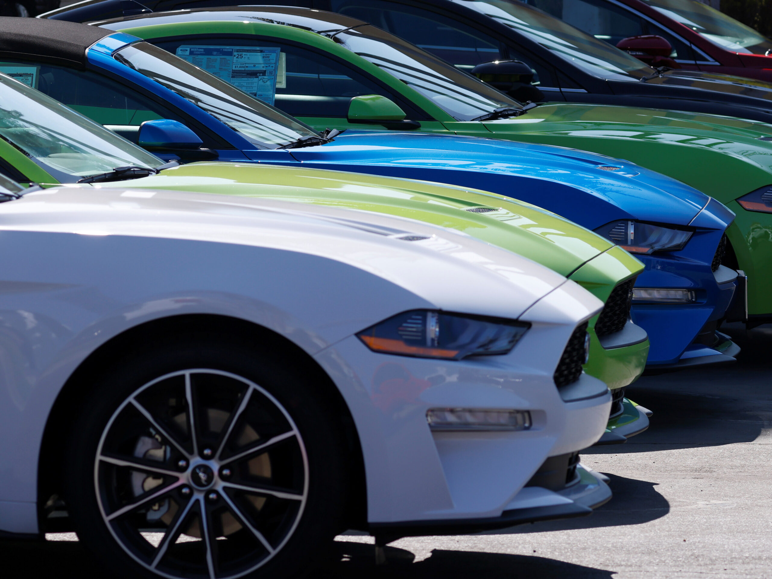 Image: New Ford Mustang automobiles are shown for sale after California Governor Gavin Newsom announced the state will ban the sale of new gasoline powered passenger cars and trucks starting in 2035 in a dramatic move to shift to electric vehicles to curtail greenhouse gas emissions, in Carlsbad, California, U.S., September 23, 2020. REUTERS/Mike Blake