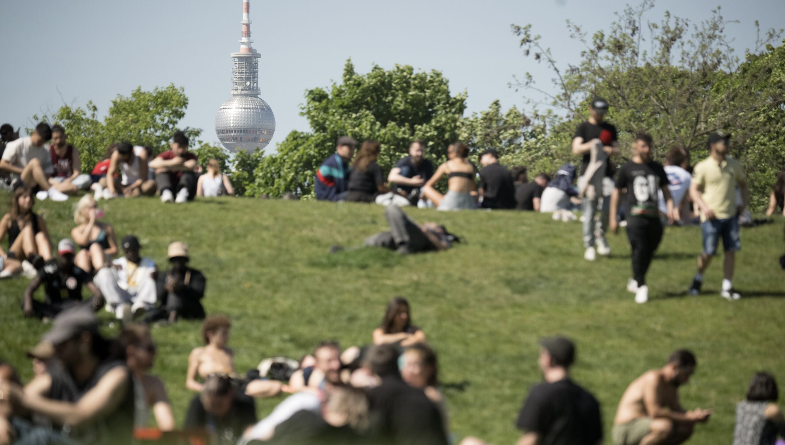 Image: People sitting in the sunshine in Görlitzer Park.
