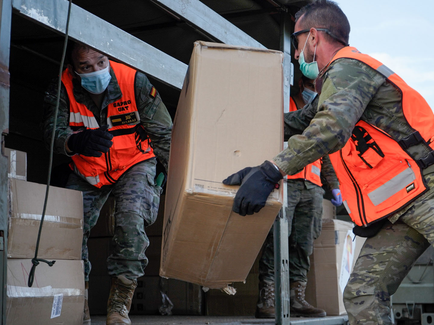 Image: Allied troops unload 10,000 protective medical suits donated by the Cezch Republic to Spain, as part of allied efforts to combat the effects of the coronavirus pandemic. (Source: NATO)