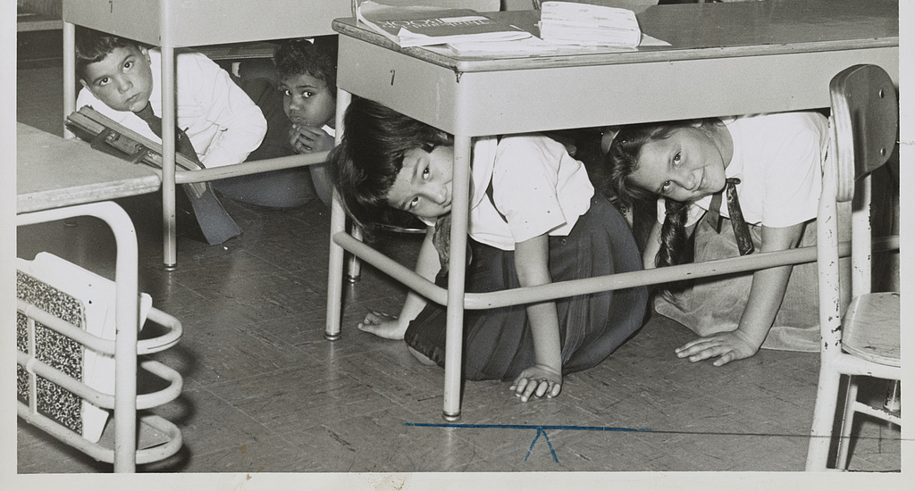 Not me. I can remember crouching under my desk at Goldwood Elementary School in northern Ohio during duck-and-cover drills.