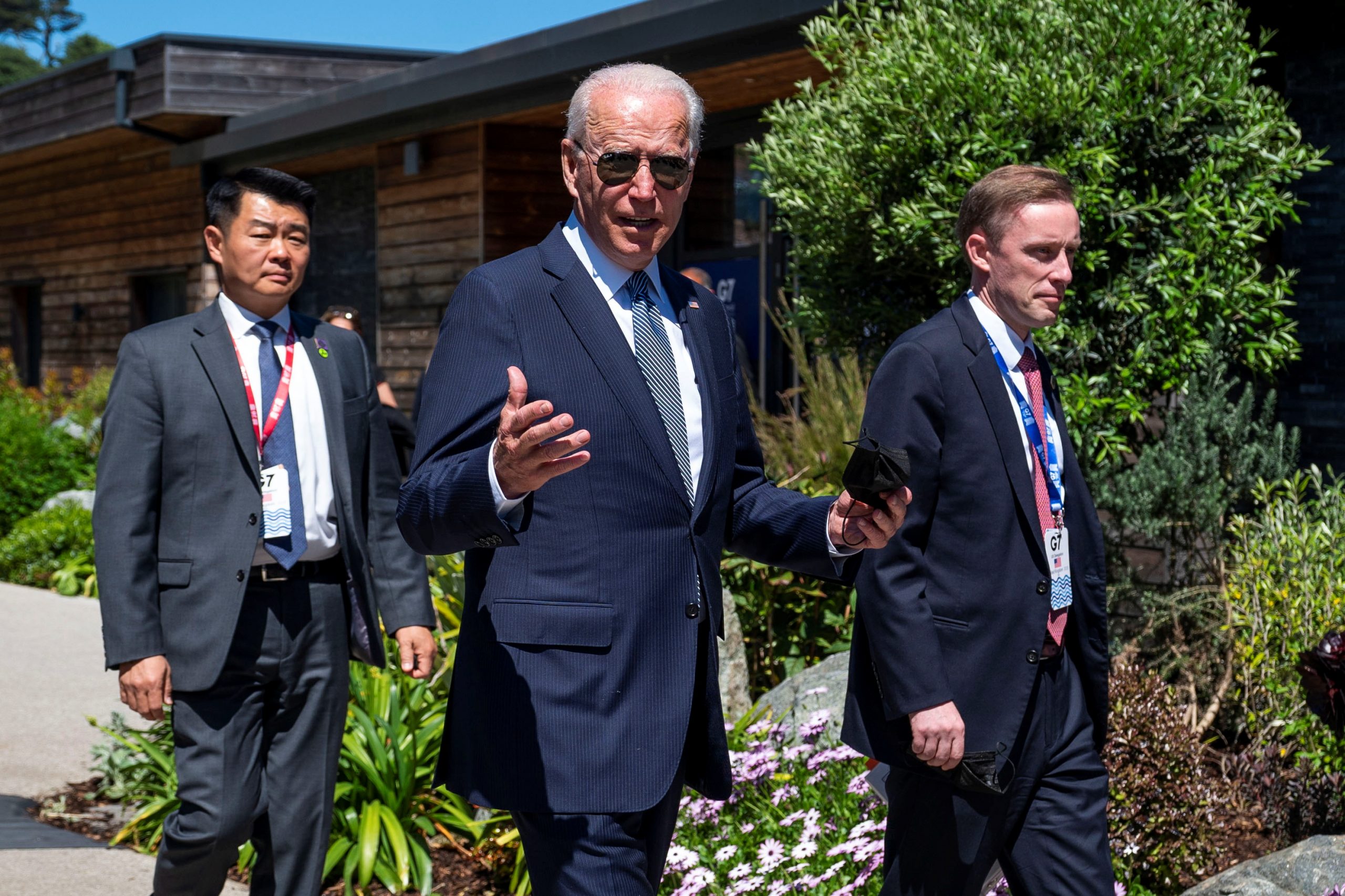 Image: U.S. President Joe Biden walks with National Security Advisor Jake Sullivan, as he arrives for the final session of the G7 summit in Carbis Bay, Cornwall, Britain, June 13, 2021. Doug Mills/Pool via REUTERS