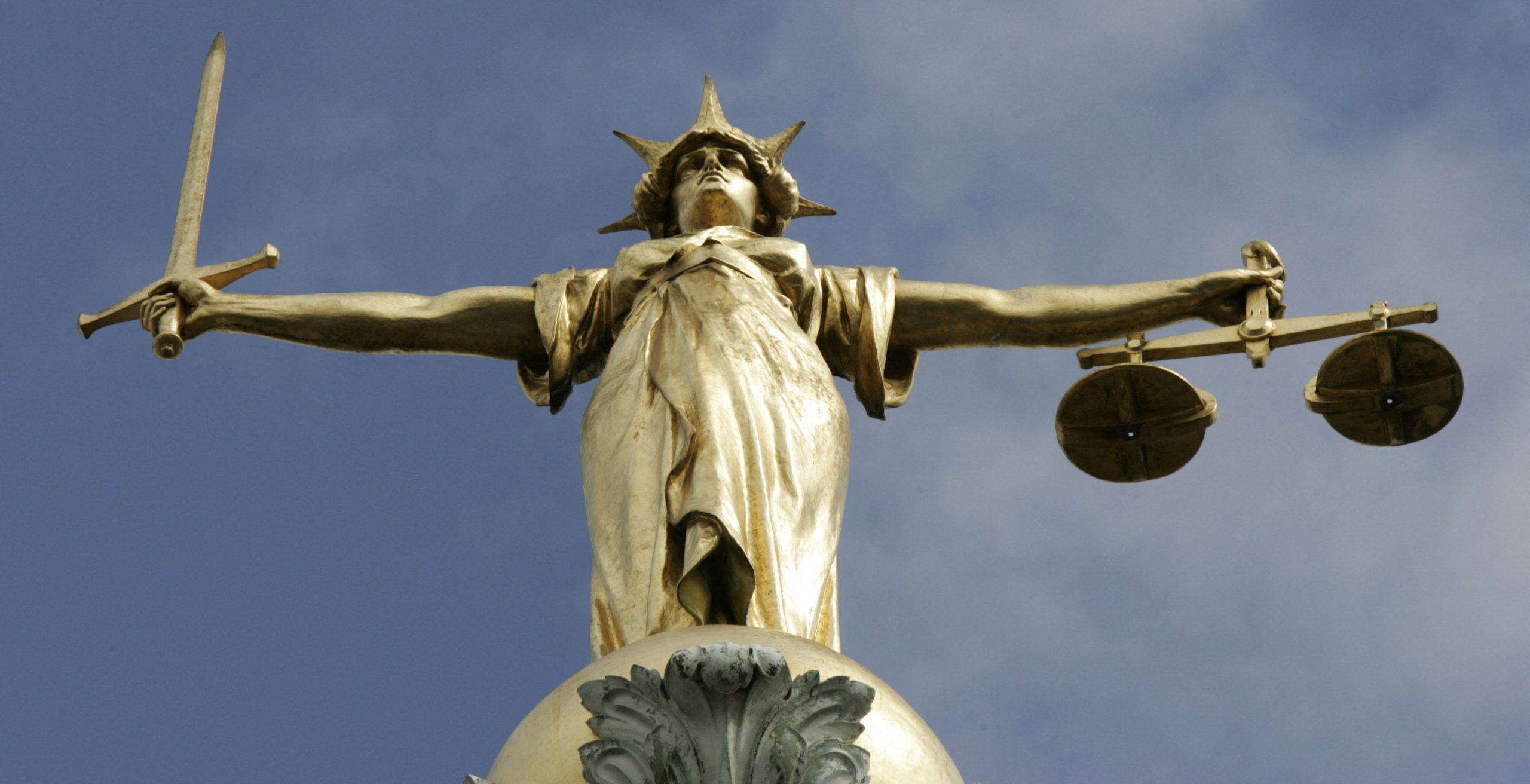 Image: The Statue of Justice, depicted as a women with a sword in one hand and scale in her other, is seen on top of the London Central Criminal Court, the Old Bailey in London August 12, 2005. Britain may reform laws to ensure efforts to deport foreign nationals deemed a threat to national security, are not blocked by judges over human rights concerns. UNICS REUTERS/Russell Boyce RUS