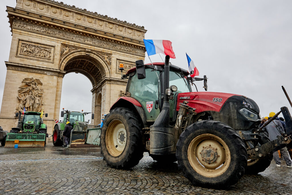 Tractors are seen parked in front of the Arc de Triomphe during a demonstration of French agricultural union Coordination Rurale in Paris on January 8, 2026. (Adnan Farzat/NurPhoto via Reuters Connect)
