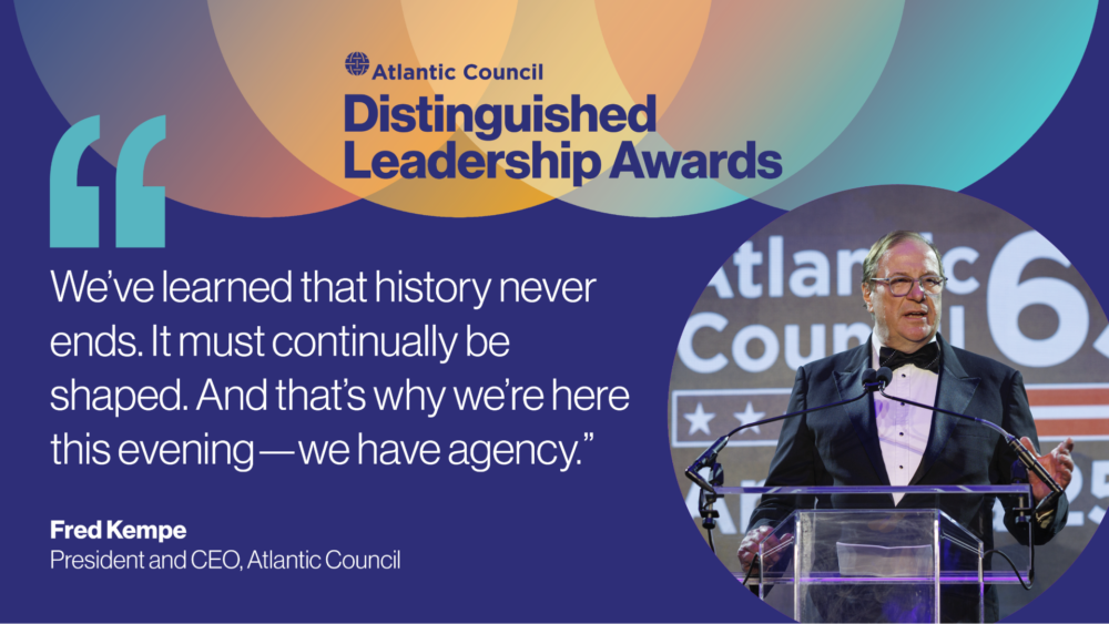 The Atlantic Council Distinguished Leadership Awards, known as the “Oscars of Washington,” honors those who demonstrate excellence in leadership: visionary policymakers, trailblazing corporate leaders, decorated military brass, and humanitarian champions who are reshaping our global landscape. The in-person event traditionally brings together an international audience of around 600 guests—including heads of state, international dignitaries, members of Congress and the administration, industry leaders, philanthropists, and the media.