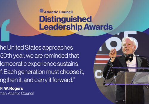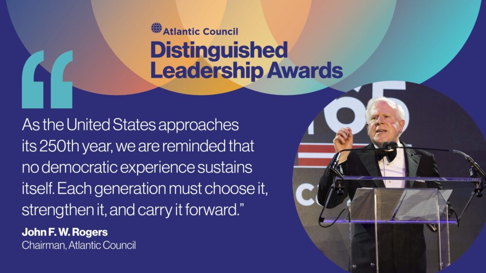 “The 250th anniversary [of the US] is not merely a celebration of what the country was but a challenge to define what it is and what it must become,” says Atlantic Council Board Chairman John F.W. Rogers at #DLA2026.