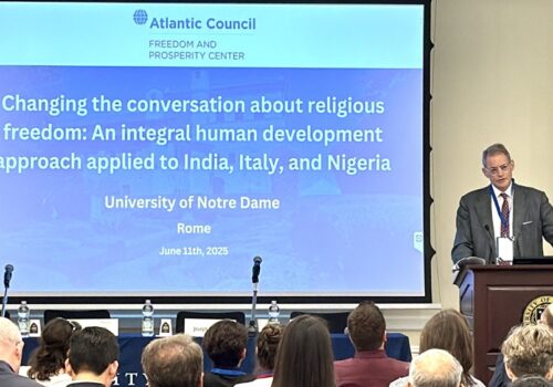 The Freedom and Prosperity Center aims to increase the prosperity of the poor and marginalized in developing countries and to explore the nature of the relationship between freedom and prosperity in both developing and developed nations.