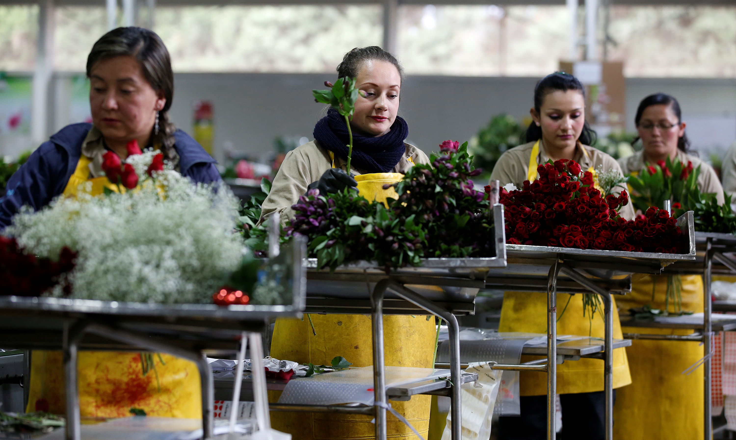 Image: Employees organise bouquets of flowers to be exported overseas, ahead of Valentine's Day, at a farm in Facatativa, Colombia February 1, 2017. Picture Taken February 1, 2017. REUTERS/Jaime Saldarriaga - RC12B31D4A30