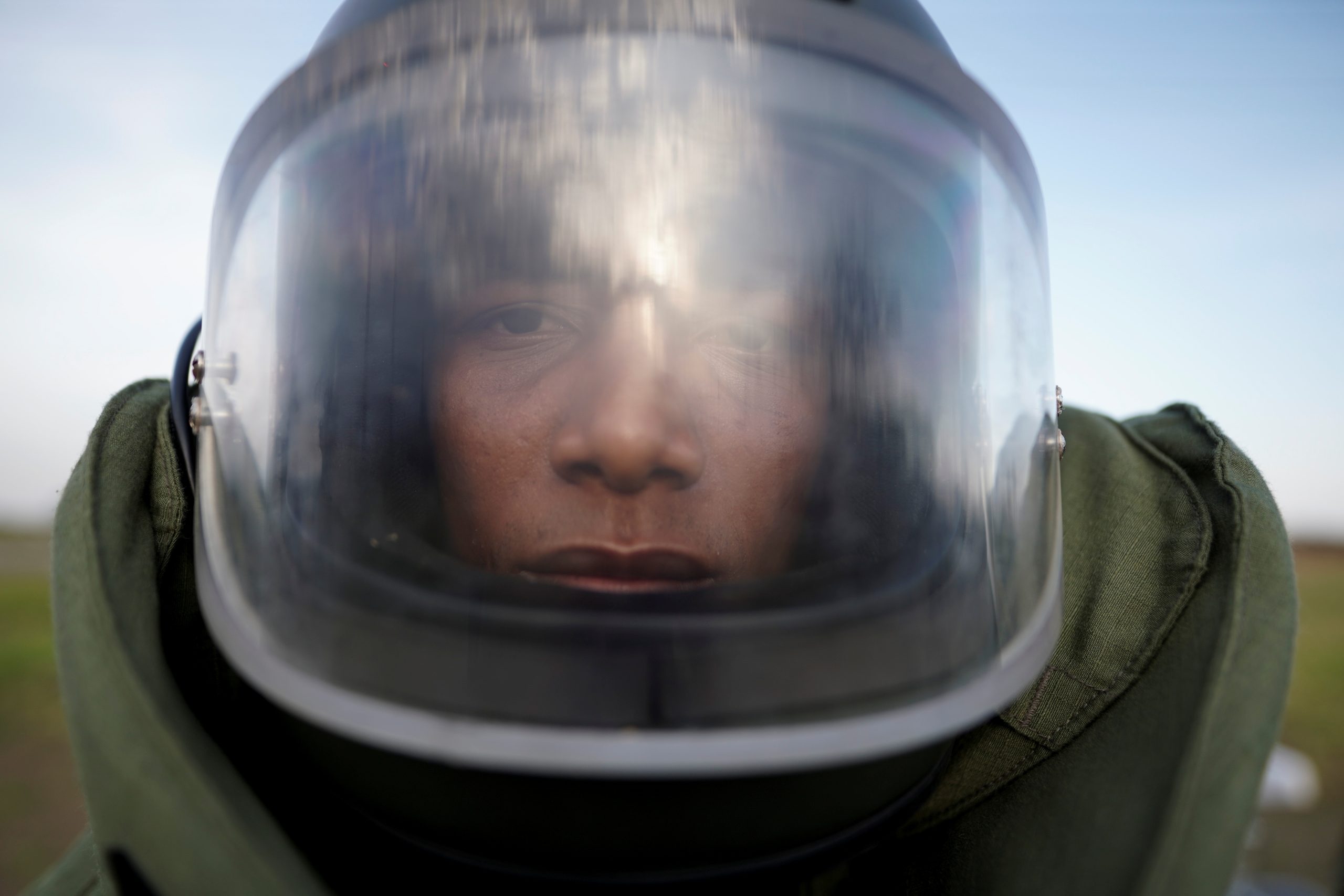 Image: A soldier wearing a bomb protection suit looks on during a start of a special operative as a measure to increase security and combat criminal groups at the border between Colombia and Venezuela, at a militar base in Arauca, Colombia February 12, 2022. Picture taken February 12, 2022. REUTERS/Nathalia Angarita