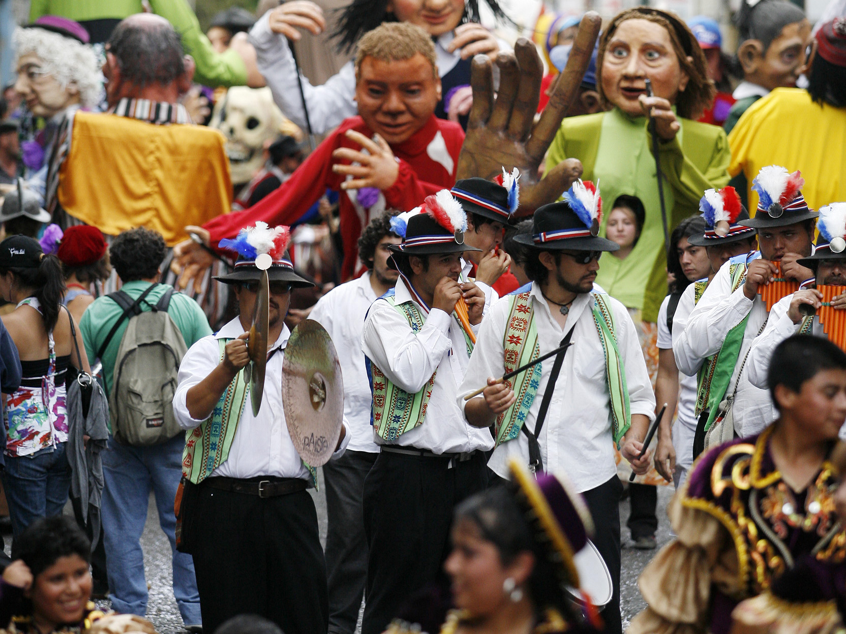 Image: Members of different Chilean groups perform during the Cultural Carnival in Valparaiso city, about 75 miles (120 km) northwest of Santiago, January 24, 2010. Valparaiso celebrates the beginning of the year of Chile's bicentenary with art activities in public places. Chile celebrates 200 years of independence on September 18, 2010. REUTERS/Eliseo Fernandez (CHILE - Tags: ANNIVERSARY SOCIETY)