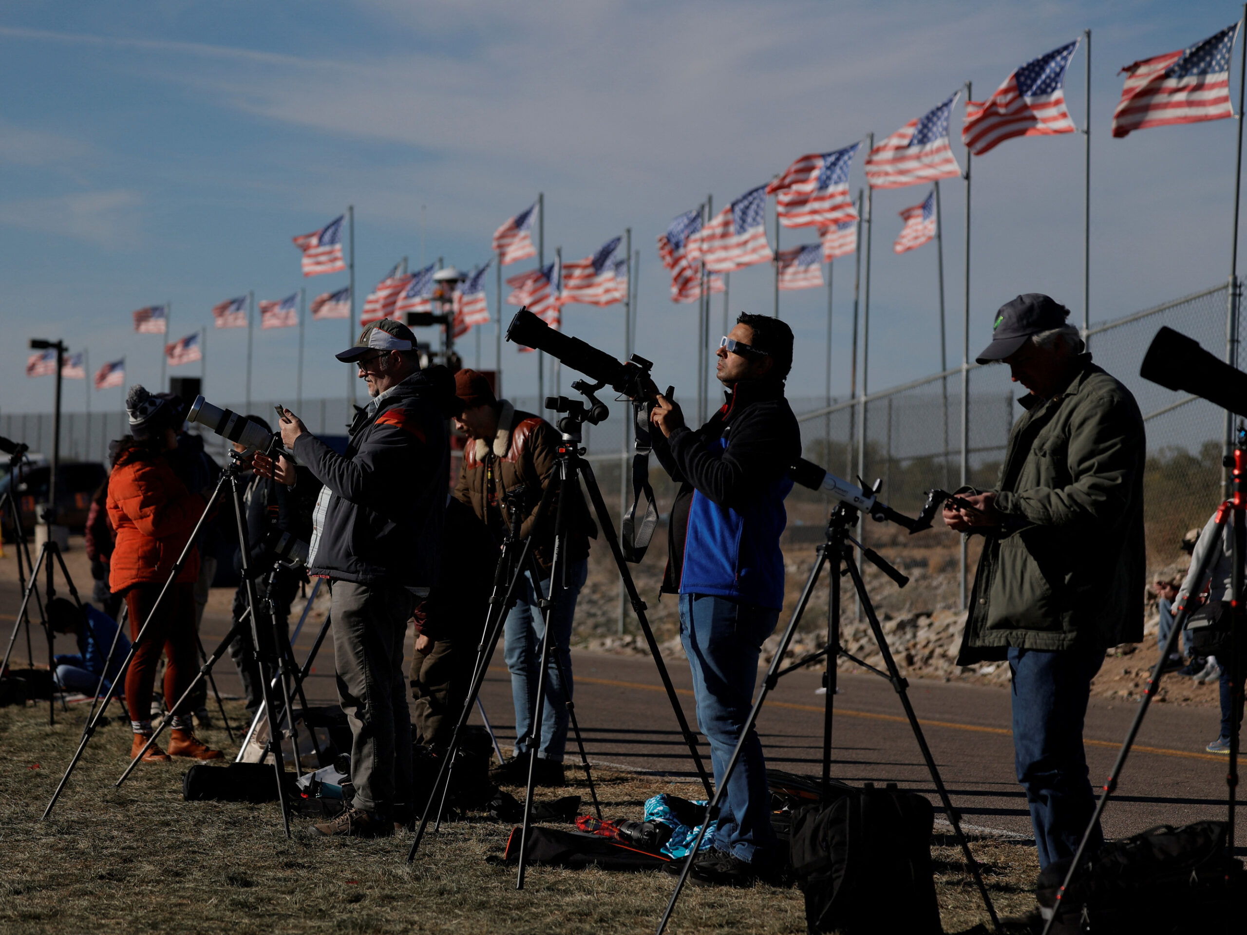 Image: People photograph the annular solar eclipse at the Albuquerque International Balloon Fiesta in Albuquerque, New Mexico, U.S., October 14, 2023. REUTERS/Adria Malcolm